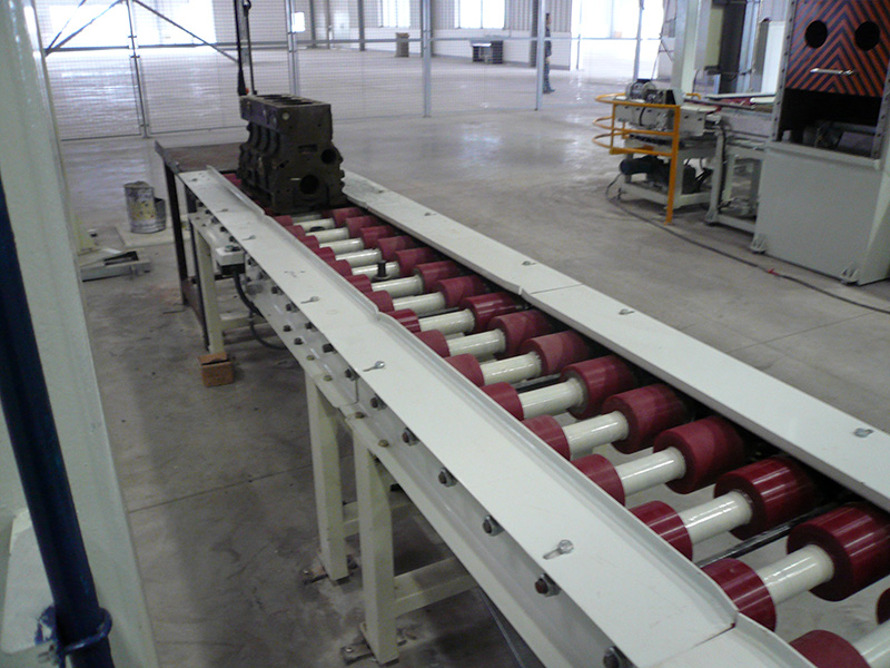 常柴股份公司柴油發動機輥筒表面包聚氨酯形式的裝配輸送線(直道輸送和彎道輸送線)